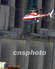 中央電視臺(tái)三日用直升飛機(jī)拍攝長(zhǎng)江三峽大壩導(dǎo)流明渠截流施工現(xiàn)場(chǎng)。隨著合龍日期的臨近,目前新聞單位在這一區(qū)域已形成了水陸空立體報(bào)道網(wǎng)。作者:宋吉河