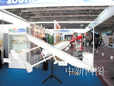 與上屆航展相比,南非的展臺此次增大了許多,但展品還是一樣,白色的是南非生產的無人機。