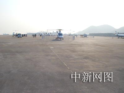 停機(jī)坪上展示直升機(jī)和豪華公務(wù)機(jī)