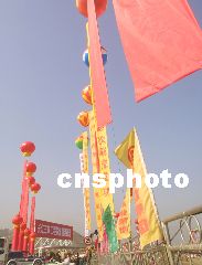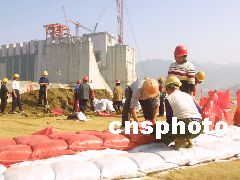 在長江三峽工程導(dǎo)流明渠截流現(xiàn)場,五日已搭建好截流儀式會場,六日將從這里發(fā)布合龍命令。