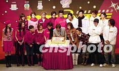 眾英皇旗下歌星11月5日在香港出席英皇3周年慈善演唱會暨群星致敬羅文金曲獻唱會記者會,向已故一代歌圣羅文致深切追悼及將演唱會收益撥捐"東華三院"作慈善用途。鄧慶樂 攝