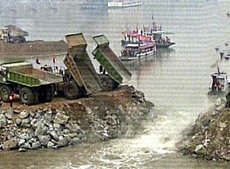 專題:三峽導流明渠截流儀式正在進行 李鵬出席