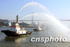 廈門港日前舉行海上消防演練,出動(dòng)六艘全回轉(zhuǎn)拖輪在海天碼頭海域進(jìn)行搶險(xiǎn)應(yīng)急演練。作者:鄭憲