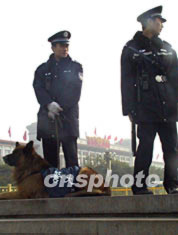 十一月六日,在中共十六大代表陸續(xù)抵達(dá)北京時(shí),北京天安門通過地下通道進(jìn)入廣場的人員都需通過警犬檢查。作者:廖文靜