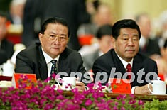 羅干與賈慶林八日在北京中共十六大的主席臺(tái)上出席開幕式。作者:毛建軍