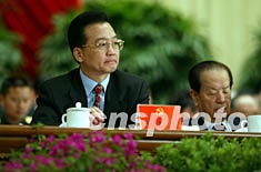 溫家寶八日在北京中共十六大的主席臺(tái)上出席開幕式。作者:毛建軍