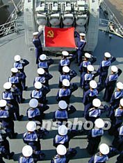 解放軍東海艦隊(duì)官兵在中共十六大召開之際列隊(duì)宣誓,堅(jiān)決履行好守護(hù)祖國海疆的神圣使命。作者:鐘魁潤(rùn)