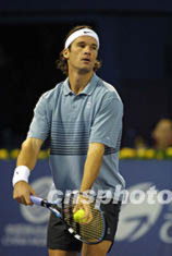下午四時(shí)整,本屆大師杯賽奪標(biāo)熱門人物之一薩芬和西班牙高手莫亞,以一場(chǎng)“火星撞地球”式的強(qiáng)力對(duì)局拉開了本次大師杯賽的賽事帷幕;在此之后,目前排名世界第一的休伊特也將出場(chǎng)迎戰(zhàn)新科法網(wǎng)狀元科斯塔。今天另一對(duì)出場(chǎng)捉對(duì)廝殺的強(qiáng)手是瑞士選手費(fèi)德勒和西班牙選手費(fèi)雷羅。而本屆奪標(biāo)另一大熱門阿加西今天暫無賽事,以逸待勞。