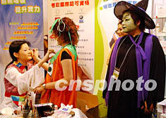 香港卓姬國際美學院,11月13日參加《香港亞太區(qū)美容展》向業(yè)內人士介紹化妝舞會的化妝技巧。洪少葵 攝