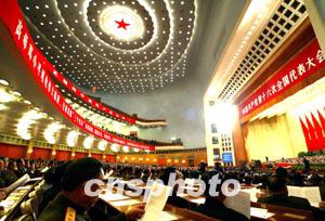 會(huì)議今天上午9時(shí)整舉行。江澤民主持大會(huì)。共2132名黨代表和特邀代表出席今天的會(huì)議。