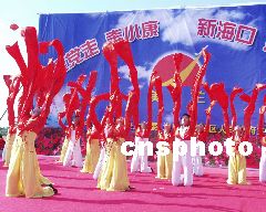 中新社?谑辉率娜针 題:情滿海口萬(wàn)綠園 萬(wàn)眾歡慶十六大