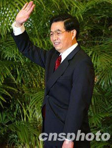 胡錦濤第一個進入記者的視野,隨后,吳邦國、溫家寶、賈慶林、曾慶紅、黃菊、吳官正、李長春和羅干依次走進,一邊走向主席臺一邊微笑著向人們揮手示意。