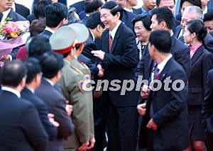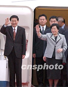 中國國務院總理朱镕基和夫人勞安,11月18日下午乘坐專機抵達香港參加“第十六屆世界會計師大會”。