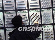500家海內(nèi)外廠商二十日匯集北京國際家具展,爭奪日趨火爆的北京家具市場。圖為參觀者對展會上的臺灣小騎兵門把倍感興趣。作者:武仲林