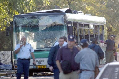 21日一名自殺炸彈攻擊者在耶路撒冷西南部梅納海姆地區(qū)一輛載滿乘客的公共汽車上引爆炸彈,在攻擊中,至少50多人受傷。
