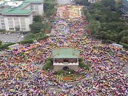 雖然有些縣市人數(shù)減少,但因地緣關系,北縣人數(shù)反而增加,從近午開始,中正紀念堂就開始人滿為患,從高處俯瞰,只見到黑壓壓一片,十分驚人。而國民黨主席連戰(zhàn)也在午后1時,抵達現(xiàn)場向農(nóng)漁民“致意”。