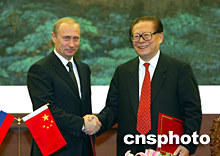 江澤民對(duì)普京來訪表示熱烈歡迎,并回顧了十年來中俄關(guān)系的發(fā)展歷程。