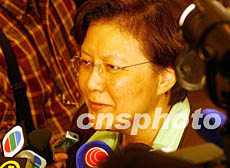 香港特別行政區(qū)第十屆全國(guó)人民代表大會(huì)代表選舉會(huì)議三日在香港舉行,會(huì)議選出36名香港特別行政區(qū)第十屆全國(guó)人大代表。圖為選舉后范徐麗泰女士接受媒體采訪。錢興強(qiáng) 攝