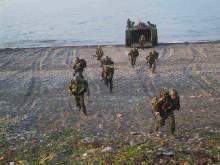 5日清晨,聯(lián)興88號操演地點(diǎn),海象相當(dāng)良好,風(fēng)平浪靜,操演正式下達(dá)命令后,只見海軍兩棲登艦艇,在空軍戰(zhàn)斗機(jī)及陸軍攻擊直升機(jī)掩護(hù)下,載運(yùn)包括戰(zhàn)車、捍馬車等車輛及海軍陸戰(zhàn)隊(duì)官兵弟兄們,發(fā)動5、6波搶灘登陸,與岸上反登陸部隊(duì)發(fā)生激戰(zhàn),在完成消滅岸上反登陸部隊(duì)及清除岸上地雷后,順利搶灘登陸成功。