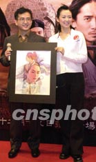 章子怡向《英雄》造型漫畫大賽得獎者頒獎。鄧慶樂 攝