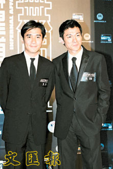 據(jù)港報(bào)報(bào)道,幾位主角劉德華﹑梁朝偉﹑陳冠希﹑黃秋生及余文樂等,都穿黑色服裝出席,而到場(chǎng)的唯一一位女演員蕭亞軒卻穿得十分鮮艷,形成強(qiáng)烈對(duì)比。眾演員先在時(shí)代廣場(chǎng)的露天廣場(chǎng)舉行祝酒儀式,為見偶像一面,現(xiàn)場(chǎng)早已圍滿了數(shù)百fans,而到場(chǎng)采訪的記者也近百人。當(dāng)劉德華與梁朝偉出場(chǎng)時(shí),fans不停尖叫,兩位男主角更互斗電力,偉仔單眼,華仔則瞇眼,不時(shí)做出放電的表情,令現(xiàn)場(chǎng)fans“喧嘩鬼叫”。