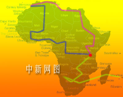 其中,作為學者的葛劍雄將跟隨攝制組的北線(圖中紅線)隊伍,采訪路線為:摩洛哥(卡薩布蘭卡)——(途經阿爾及利亞)——突尼斯——利比亞——埃及——(逆尼羅河而上)——蘇丹——埃塞俄比亞——肯尼亞——烏干達————坦桑尼亞,共八個國家。