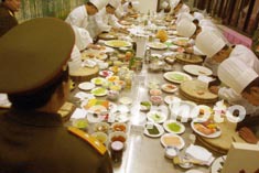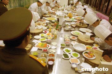 解放軍總參謀部十七日在北京舉行烹飪技術(shù)比賽,以促進(jìn)部隊生活水平的提高。解放軍部隊的伙食正在向著科學(xué)型、營養(yǎng)型轉(zhuǎn)變。作者:宋吉河