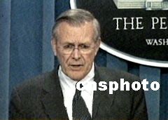 美國國防部長拉姆斯菲爾德今天也發(fā)表講話指出,十枚攔截導(dǎo)彈看上去好像微不足道,對于整體導(dǎo)彈防御計劃來說,這是萬里長征的第一步。他稱:“美國目前沒有任何能力阻擋世界任何地方發(fā)射來的;蜿懟鶎(dǎo)彈!