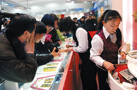 在北京菜百商場,長龍般的隊伍一直在排隊購買小金條,商場售貨人員也認為貨估計很快就會銷售一空。而菜百公司獨家推出的“羊年賀歲”金條是所有購買者的關注熱點,顧客的購買金額最高達到了10萬元,這也是北京地區(qū)惟一能夠買到“羊年賀歲”金條的商場。