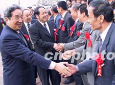 福建省政協(xié)主席陳明義(左一),十九日與出席福建省第七次歸僑僑眷代表大會的閩籍港澳代表共敘鄉(xiāng)情。作者:劉可耕