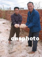 據了解,遂溪縣的江洪鎮(zhèn)和河頭鎮(zhèn)也同時遭受了這一重災。村民說,最大的一塊冰雹50多公斤,直徑達40厘米。受災地面堆積冰層約20厘米厚。