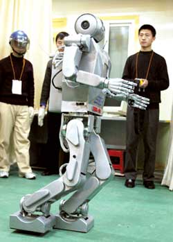 中新網(wǎng)12月29日電 隨著幾個(gè)太極拳動(dòng)作行云流水般的完成,昨天上午,我國(guó)首個(gè)仿人機(jī)器人在北京理工大學(xué)通過(guò)了國(guó)家863項(xiàng)目組的驗(yàn)收。驗(yàn)收專家認(rèn)為該機(jī)器人項(xiàng)目在系統(tǒng)集成、步態(tài)規(guī)劃和控制系統(tǒng)等方面實(shí)現(xiàn)了重大突破,標(biāo)志著我國(guó)仿人機(jī)器人研究已經(jīng)跨入世界先進(jìn)行列。