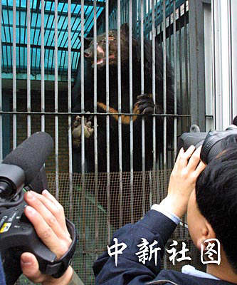 傷害北京動物園黑熊和棕熊的清華大學(xué)學(xué)生劉海洋日前已被取保候?qū)彛墒潜凰麄Φ囊恢缓谛苋栽趧游飯@醫(yī)院的監(jiān)護(hù)室里接受治療,二十九日,北京眾多媒體記者在采訪時看到在病室里的滿面?zhèn)鄣暮谛苋允滞纯。作?李剛