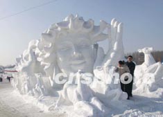圖:凈月潭雪雕作品《春的使者》