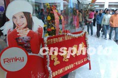 廣東惠州市數(shù)碼商業(yè)街新年之際隆重開(kāi)業(yè),在新落成的數(shù)碼商業(yè)街上,影星趙薇的廣告隨處可見(jiàn)。中新社傳真 錢(qián)興強(qiáng)攝
