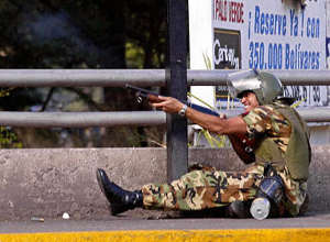 委內(nèi)瑞拉首都加拉維斯再次出現(xiàn)大規(guī)模示威游行,同時查韋斯總統(tǒng)支持者和反對者之間發(fā)生暴力沖突。警察向示威者發(fā)射橡皮子彈、施放催淚瓦斯,示威者則投擲石塊、瓶子等回?fù)簟D壳耙延袃扇吮淮蛩,多人受傷?/p>