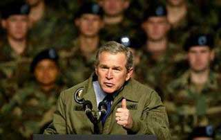 身穿綠色軍用夾克的布什對(duì)四千多名軍人及他們的家屬發(fā)表演說,他語調(diào)慷慨激昂:“我們已做好準(zhǔn)備!睂(duì)伊拉克的戰(zhàn)爭并“不是去征服,而是去解放”。