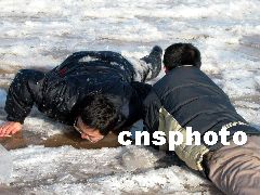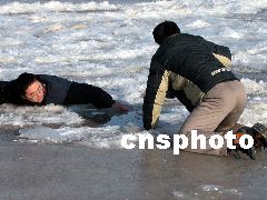 濟(jì)南一市民3日到洛口觀賞黃河封河奇觀,結(jié)果不甚落入冰窟,幸虧同伴機(jī)智向救,才僥幸生還。3日,黃河出現(xiàn)了歷史上少有的大范圍封河現(xiàn)象,許多市民聞?dòng)嵡皝?lái)目睹這一奇觀。河務(wù)部門提醒市民,雖然黃河已經(jīng)冰封,但有些河面上冰層較薄,千萬(wàn)不要在上面行走。