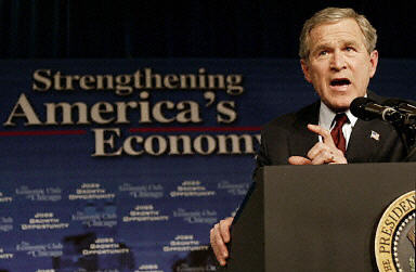 盡管美國(guó)經(jīng)濟(jì)已經(jīng)連續(xù)五個(gè)季度增長(zhǎng),并且增長(zhǎng)幅度達(dá)到百分之三,但就業(yè)還在下降。這種狀況同一九九一年老布什當(dāng)政時(shí)期非常類似。小布什已經(jīng)認(rèn)識(shí)到,不管他在地緣政治上多么成功,搞好經(jīng)濟(jì)才能確保他在白宮多呆四年。