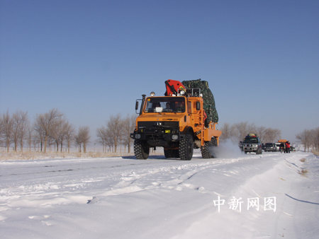 返回艙從內(nèi)蒙古草原沿公路運(yùn)往北京(1)孫陽 攝