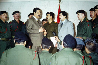 圖:伊總統(tǒng)薩達(dá)姆接見共和國衛(wèi)隊高級將領(lǐng)