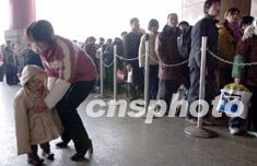 據(jù)中央電視臺報道,目前,鐵道部已經(jīng)確定了三套梯次運力方案,分別應對正?土鳌⒏叻蹇土骱屯话l(fā)客流,安排直通臨時客車210對,同比增加43對,基本能夠滿足春運客流需求。節(jié)日期間,鐵路部門將增開售票窗口、延長售票時間,方便旅客購票。