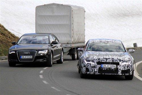 近日奧迪A7和新一代A8同時出現在奧地利的高速公路上,雖說A7的測試已經進入尾聲并且即將發(fā)布,但是嚴謹的德國人依舊將這臺全新四門Coupe包裹的嚴嚴實實的,不過就算是這樣,路試車輛還是留下了一些蛛絲馬跡。