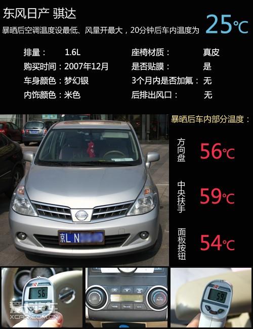 淺色內(nèi)飾的騏達與其他深色車相比室內(nèi)溫度差異并不大,旋鈕與大按鍵搭配的空調(diào)控制單元用起來十分簡單便捷,制冷效果也不錯,測試結(jié)束車內(nèi)溫度降到了25度。