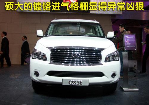 近年來(lái)SUV車型持續(xù)火爆,各廠商陸續(xù)推出新的車型以增加市場(chǎng)競(jìng)爭(zhēng)力。同時(shí)性能強(qiáng)悍,寬大舒適的大型SUV,也得到了一些具有獨(dú)特品位喜歡運(yùn)動(dòng)且資金富裕消費(fèi)者的最愛(ài),因此大型豪華SUV市場(chǎng)也受到了不少消費(fèi)者的關(guān)注。英菲尼迪是日系高端品牌中最具有藝術(shù)氣息的,今年在北京車展上就展出了全新一代的QX56,QX56作為一款7座豪華SUV車型,一經(jīng)推出就立刻受到了的中國(guó)消費(fèi)者的關(guān)注。近日我們從英菲尼迪4S店銷售人員處獲悉到,全新的英菲尼迪QX56將于今年9月份到店,預(yù)計(jì)售價(jià)160萬(wàn)元左右。銷售人員還表示,目前各4S店均已開(kāi)始接受預(yù)定,訂金10萬(wàn),第一批車主將于10月份提到現(xiàn)車。下面就讓我們回顧一下,在2010北京車展上見(jiàn)到的英菲尼迪QX56。