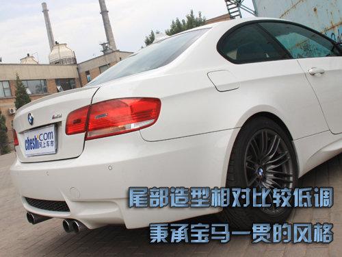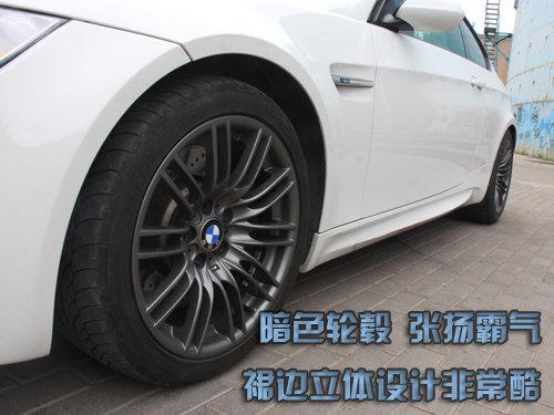 雙十輻18寸運動輪轂采用暗色亞光噴涂,可以引起車迷們對駕駛M3飛奔時速度感的無盡遐想。側面裙邊采用兩條對面弧線做為輪廓,相對下方的一條更加外凸。兩門的設計設車身側面感覺相對簡潔,側住平順的下滑把視線領入了車尾的部分。