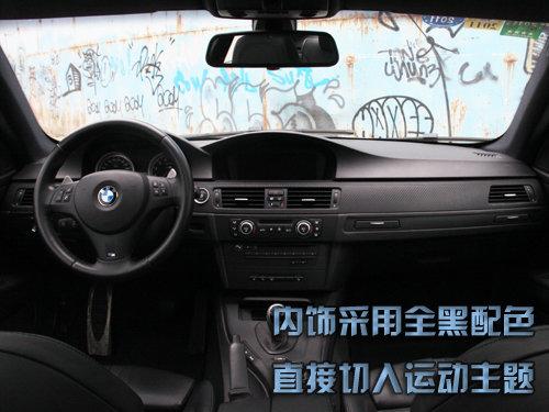 如果說外觀的感覺有點隱晦的小激情,那內(nèi)飾的感覺則是給人徹頭徹尾的運動風(fēng)格。M3的內(nèi)飾采用非常動感的全黑配色,而且黑的非常徹底。除了應(yīng)該提示的部分用了小面積銀色裝飾條和藍(lán)、紅顏色稍微處理,其他的可以用伸手不見五指來形容,彰顯出個性化的運動特質(zhì)。