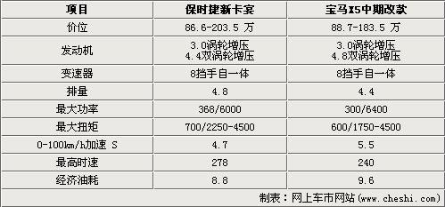 在動(dòng)力部分卡宴包含V6和V8版本以及混合動(dòng)力車(chē)型,寶馬新X5目前提供直列6缸和V型8缸車(chē)型。兩款車(chē)型的V6車(chē)型都帶有渦輪增壓技術(shù)其中寶馬直列6缸引擎為單渦輪雙渦管增壓器,技術(shù)上更具優(yōu)勢(shì)。