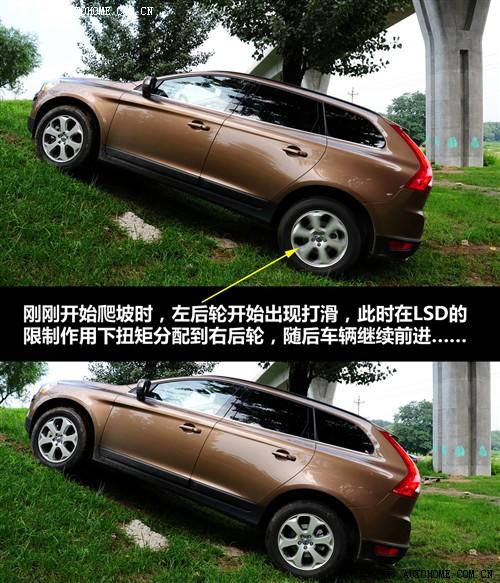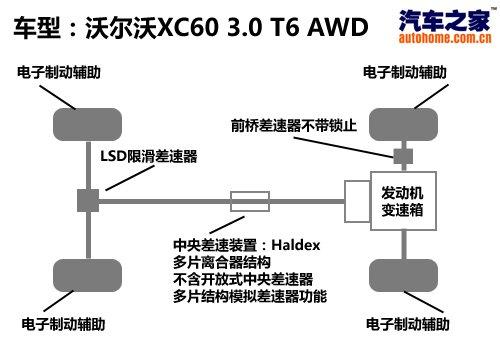 XC60是一臺偏重城市駕駛的車輛,不過作為一臺SUV,它也具備一定的野外行駛能力,該車配備了瀚德公司生產(chǎn)的第三代Haldex四驅(qū)系統(tǒng),具有多片離合器的中央分動裝置且在后橋上具有有LSD限滑差速器,配合電子輔助系統(tǒng)進行工作,對于難度不是太大的越野項目通過能力還是不錯的,電子系統(tǒng)制動的效果也很明顯。