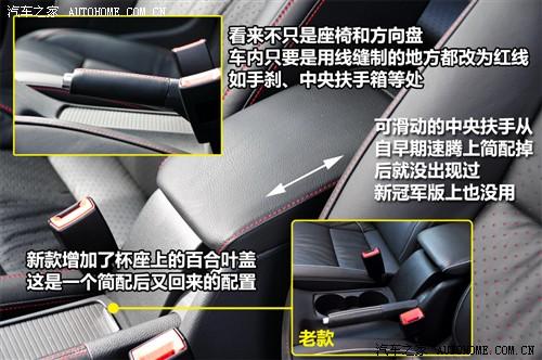 內(nèi)飾的變化主要有兩方面,一是將車內(nèi)真皮的縫合線從白色變成紅色,與整體黑色的內(nèi)飾結(jié)合,運(yùn)動(dòng)效果更明顯。另一處實(shí)用性更強(qiáng)的變化就是將真皮座椅進(jìn)行打孔處理,現(xiàn)在已經(jīng)進(jìn)入夏天,將會(huì)有更多的新冠軍版車主享受到這項(xiàng)變化所帶來(lái)的好處。增加的實(shí)在配置還有定速巡航,少說(shuō)也是幾百元的成本。